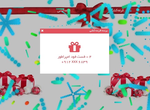 گرافیک زیبا و جذاب هنگام برگذاری قرعه کشی ، شما میتوانید تمام قسمت های گرافیکی قرعه کشی را به سلیقه خود تغییر و قرعه کشی های متفاوتی بسازید !